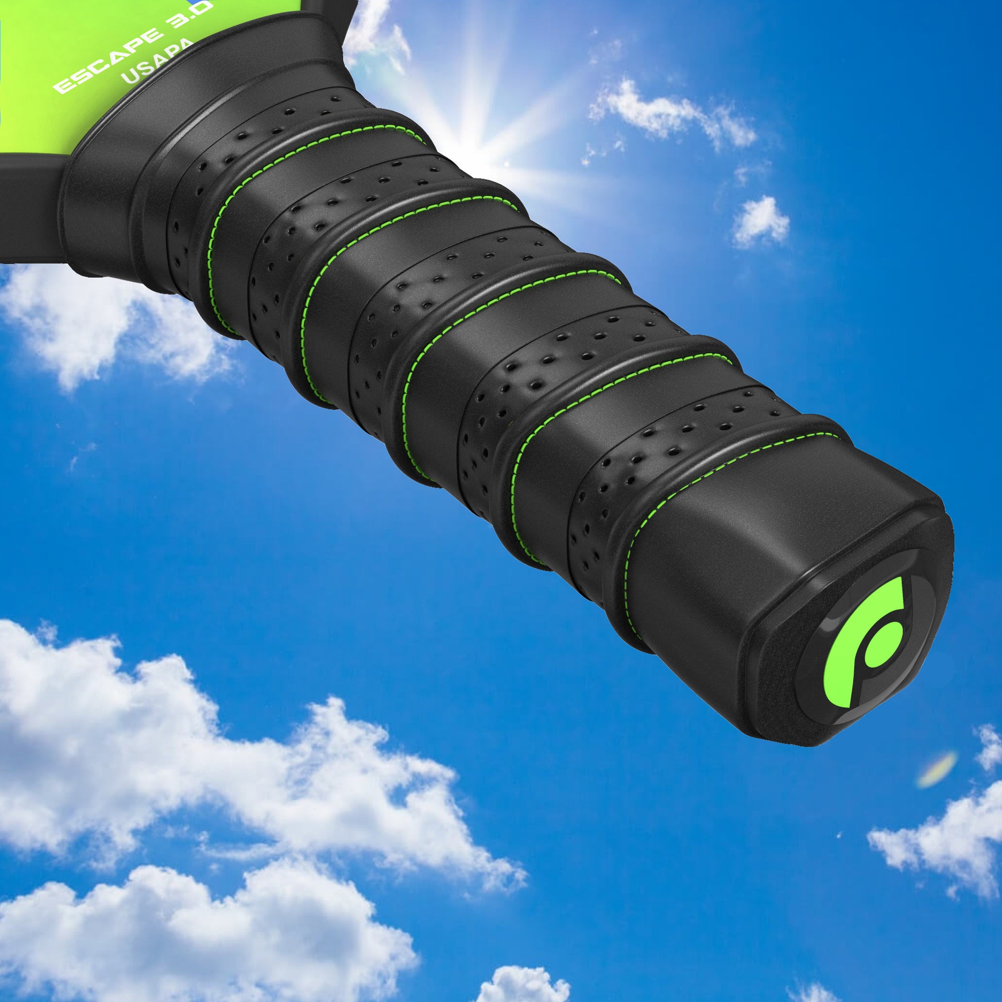- ERGONOMIC COMORT GRIP: Ergonomically designed, with a soft cushion breathable perforated stitched grip. Pickle ball paddles made to feel great in your hands!